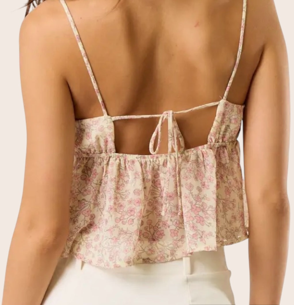 Flower Print Cami Back Tie Top